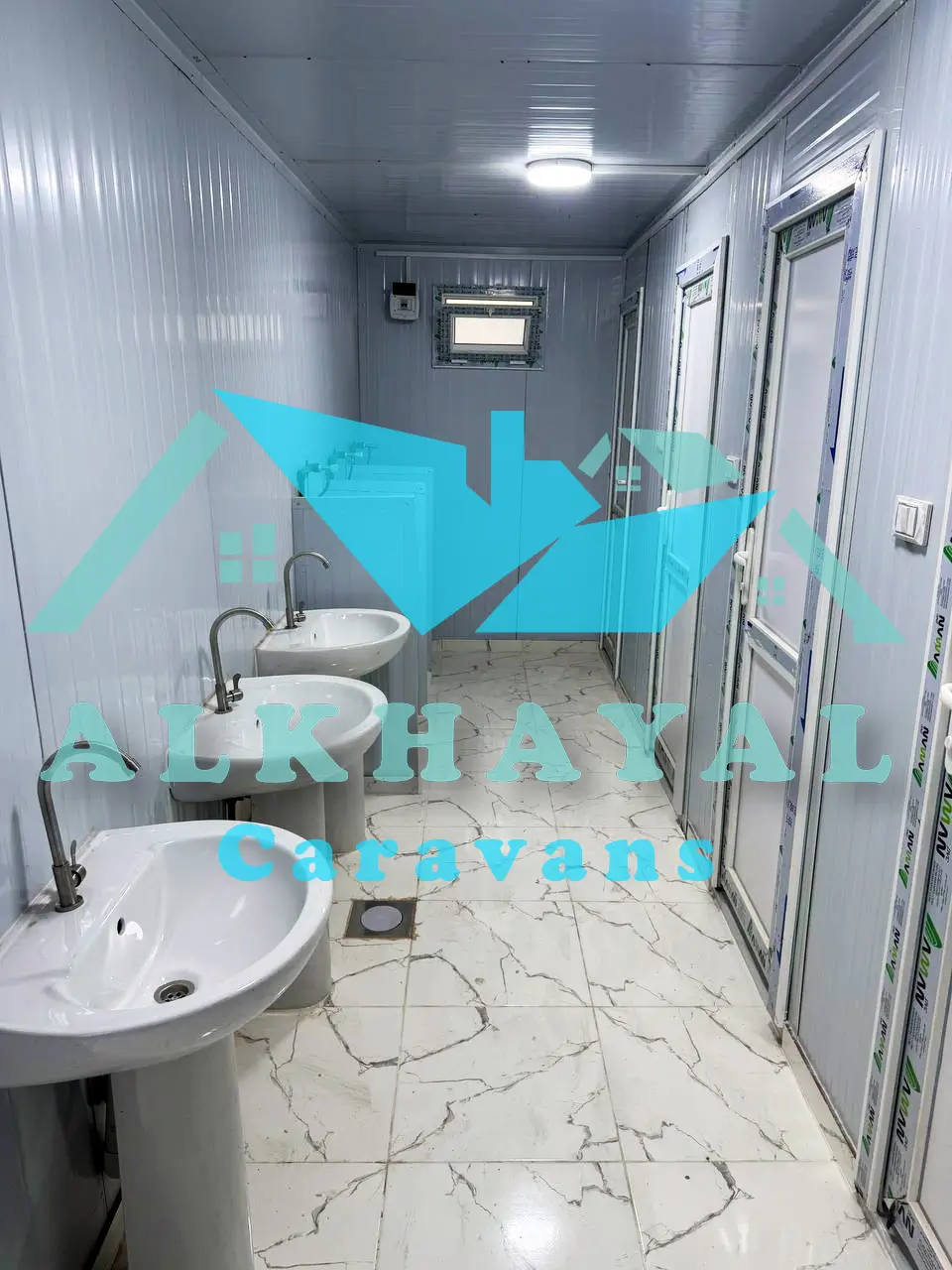 في شركة كرفانات الخيال نقدم كرفان حمام متكامل يشمل: